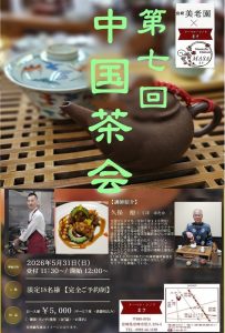 ヌーベル・シノワまさの太田シェフの作るお料理とそれに合ったお茶を日本茶インストラクター・リーダーや中国政府認定の茶藝師と評茶員、和漢薬膳師の資格を持つ美老園代表の久保裕がセレクトし、お料理とお茶のマリアージュを楽しんでいただく企画で、毎回多くの皆様に楽しみにお待ちいただいております。