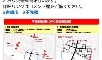 1月17日土曜日はご来店予定のお客様がいらしたので当初営業の予定でございましたが、ご存知の通り、先日大淀川橘橋北側河畔で発見されました第2次世界大戦時の米軍のものと思われる不発弾処理が行われるため、危険区域内に住民避難指示が出されています。そのため、橘通本店もその危険区域内にあるため、急遽閉店するこ…